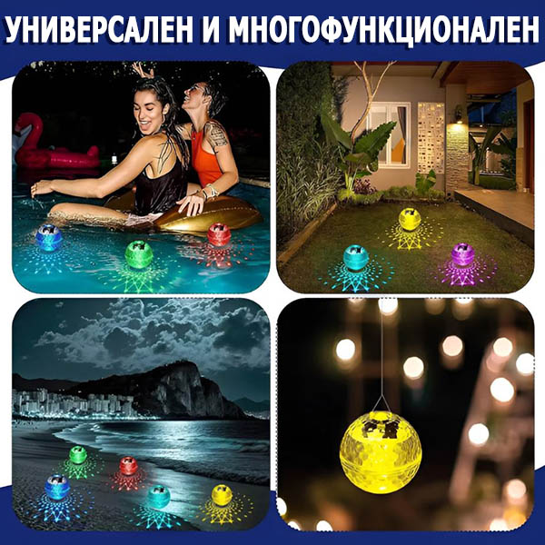 Не само за басейни! Поставете я навсякъде – на балкона, близо до растения или в декоративна купа. Това универсално слънчево осветление се адаптира към всяко пространство, придавайки уютен, стилен акцент на вашия дом.