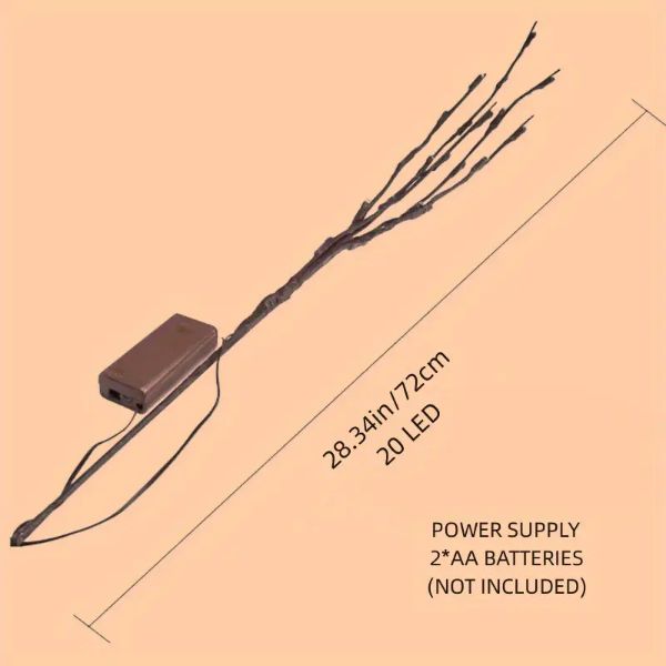 Тези светлини от върбови клонки се захранват с 2 x AA батерии (батериите не са включени в комплекта) и генерират минимална топлина дори след продължителна употреба.