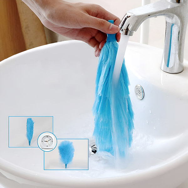 Без повече еднократни прахосмукачки! Леката конструкция прави почистването на високи места лесно, докато миещата се микрофибърна глава издържа години—просто изплакнете и използвайте отново, спестявайки време и пари.