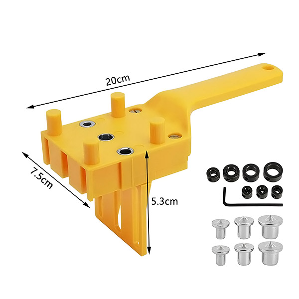 Самоцентриращият се водач помага да се намери перфектната позиция за пробиване без допълнителни измервания, което ви позволява да работите ефективно. Със стоманени втулки за допълнителна прецизност този инструмент осигурява гладко пробиване, което гарантира перфектно вграждане на дюбелите, в резултат на което се получават трайни и естетически издържани връзки.
